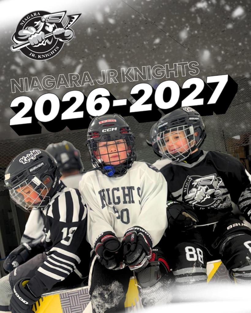 Practice to game ratio is at least 4:1. Goalies receive 1hr of goalie training for 25 weeks during the season. Season starts with a training camp in August and runs till April while breaking for Christmas and March break. Due to our belief in multi-sport athletes, we will not be fielding spring or summer teams and encourage players to play other sport! The 2026-2027 schedule will be final after all Niagara Jr. Knights try outs have been completed. Please do not compare any previous year to the year you are signing up for. Equipment required: white helmet, team hockey bag, game jerseys cover pants by RYR, white/black gloves and active wear. NO EXCEPTIONS!